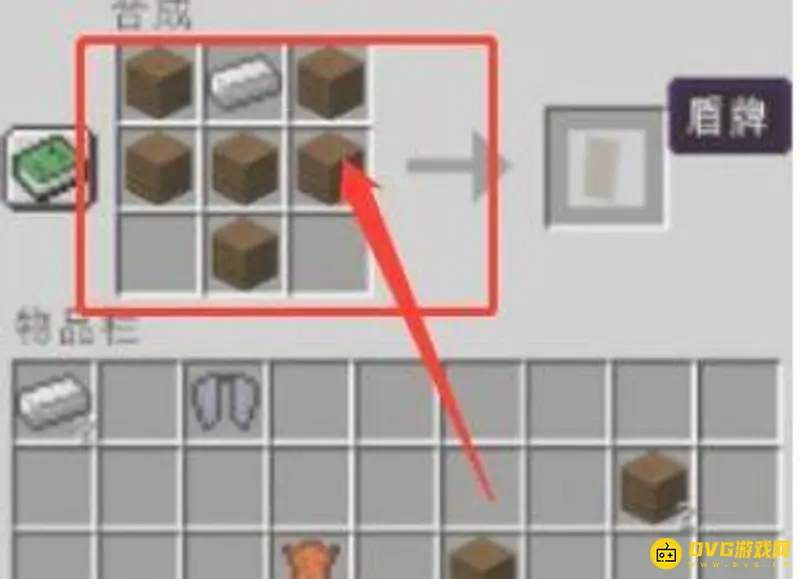4、把铁锭和木板放进工作台,接着就会获得盾牌。