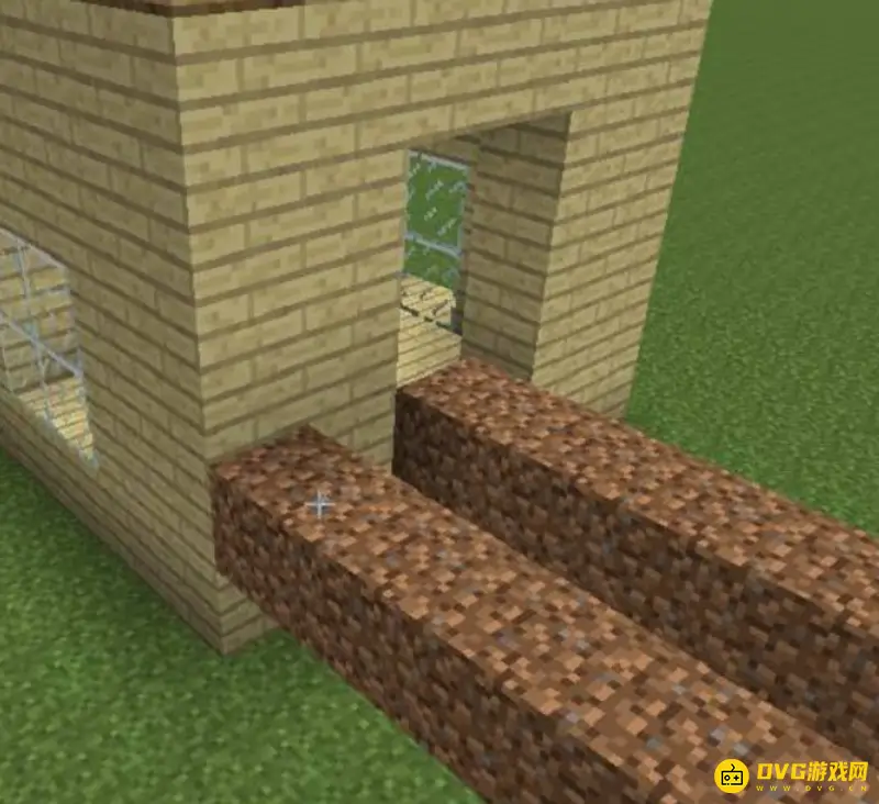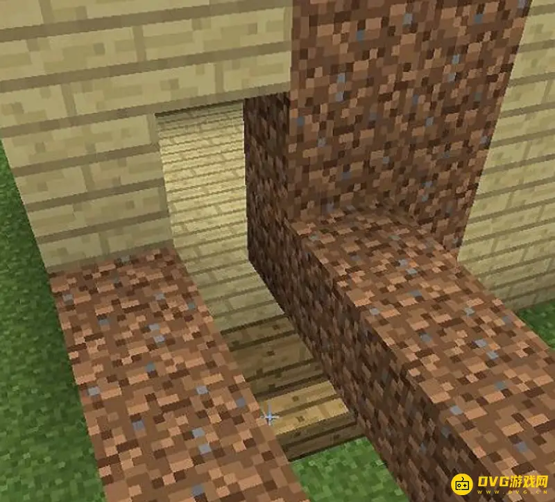 5、我们这时候就需要改进一下了,先将门的其他的位置堵住,留出只允许单人出入的口。下面铺上一个楼梯。