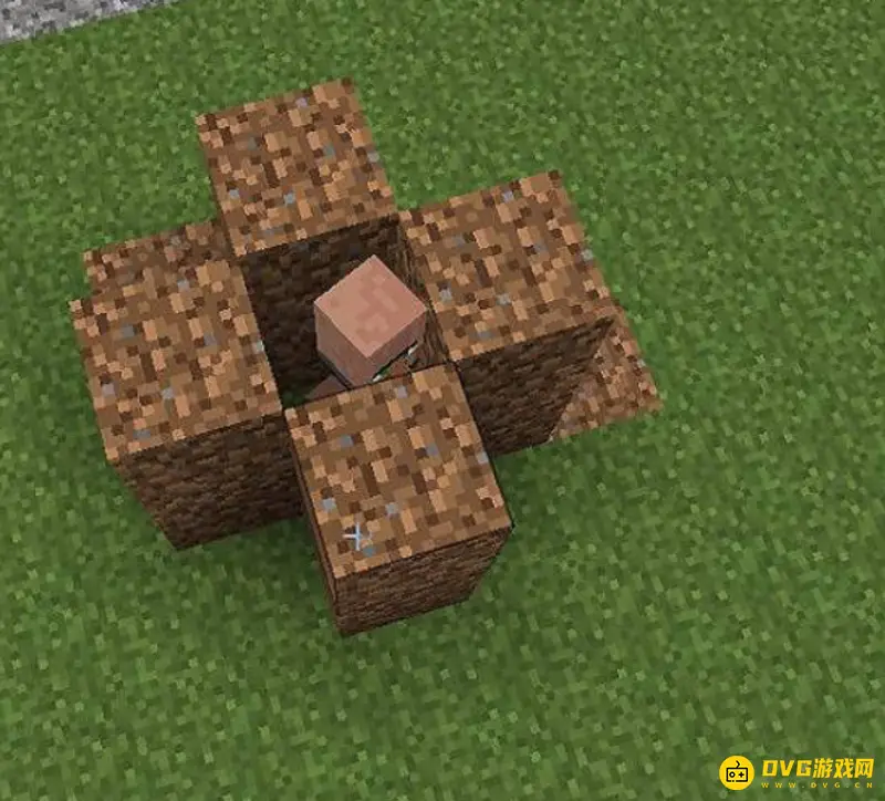 2、找到村民后,我们需要的就是用泥土(推荐用泥土,材料容易获得)将他困住,要两格的高度。因为村民是会跳一格高的。