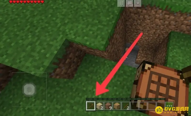 1、挖石头之前我们首先得准备一个木镐,然后用木镐来挖泥土,如下图所示。