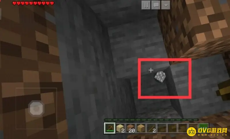 3、看到石头之后就换成木搞挖,按住石头不放,过一会儿就会挖好石头,如下图所示。