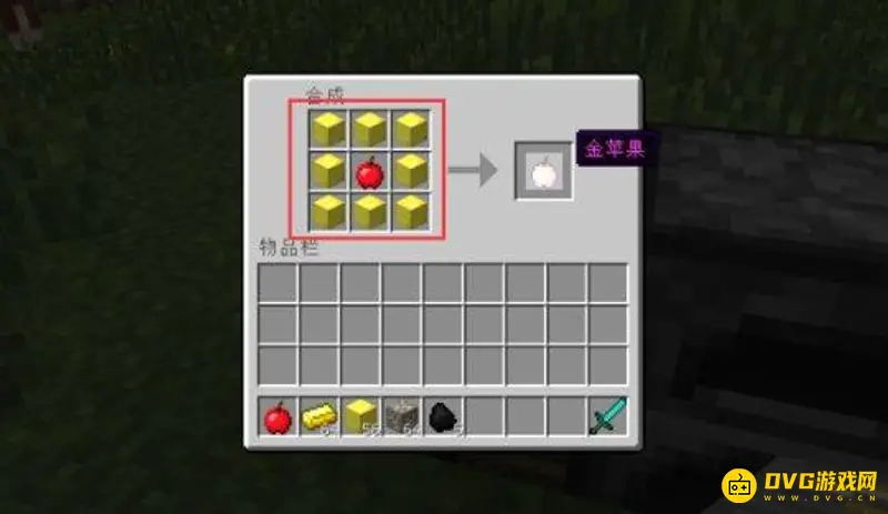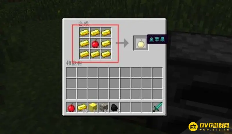 3、在工作台用8个金锭加一个苹果合成的是普通金苹果,如下图所示: