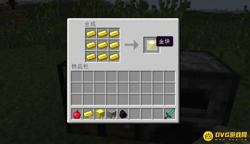 2、用9个金锭在工作台可以合成一个金块,如下图所示:
