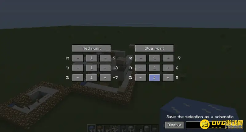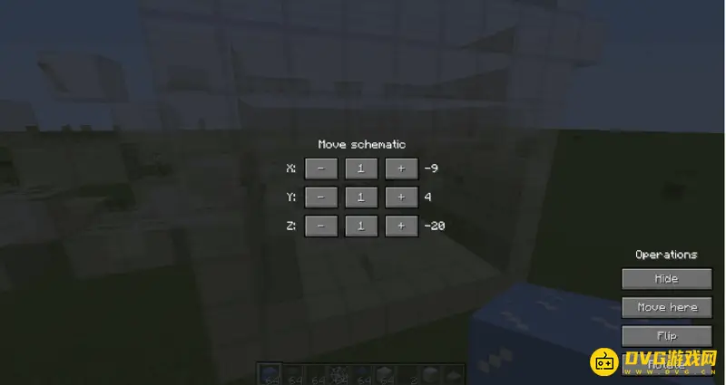 3.按小键盘上的-键来调整加载的schematic文件(如果开启其中的投影功能,将自动放置方块到对应的投影的方块上)。