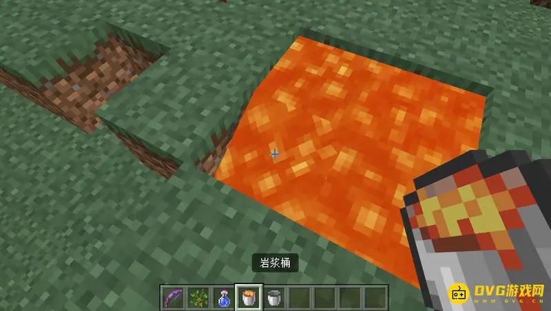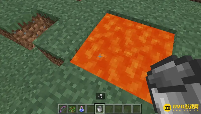 1,首先我们需要找到一块岩浆,然后拿着铁桶右键点击岩浆。
