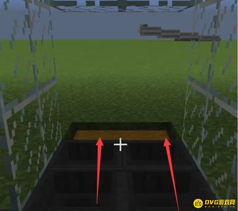 8、回到刷怪塔顶部,将纵向的两边也像横向的那样做一个长8格宽2格高2格的凹形区域。