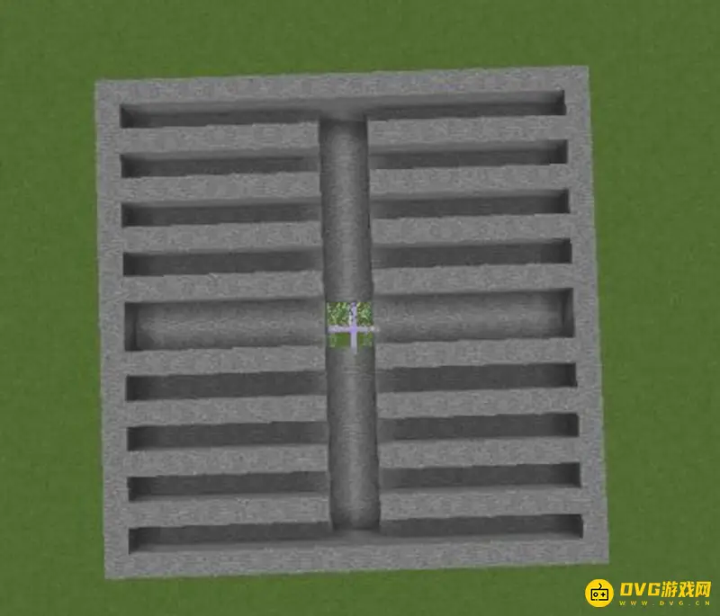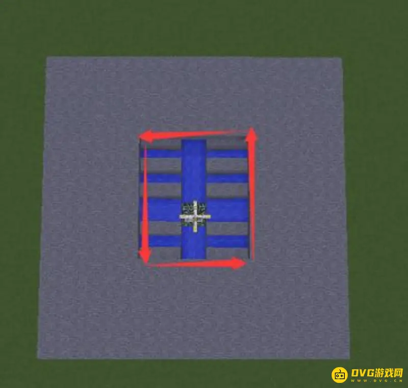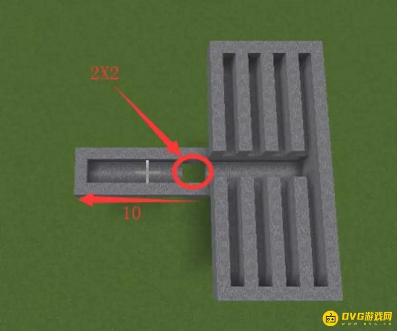 6、在横向的尽头空出一个2X2的区域,并且两边向外延伸10格围起来,中间区域为8格的距离。