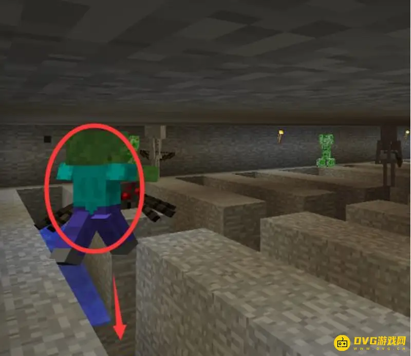 1、用任意方块搭建一个高28格的柱子。这样保证怪物一定会被摔死。