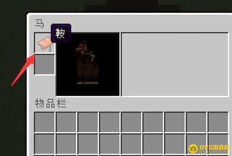5、即便你驯化成功了马,但是坐在马背上你也没有丝毫办法能让马动起来。其实这时候只要你骑在马背上按下E键,就能打开马的装备界面,把你一开始准备的鞍放进左上角的格子里。现在,马儿就可以被你用方向键控制行动了。按空格键可以跳跃,按Shift键可以下马。