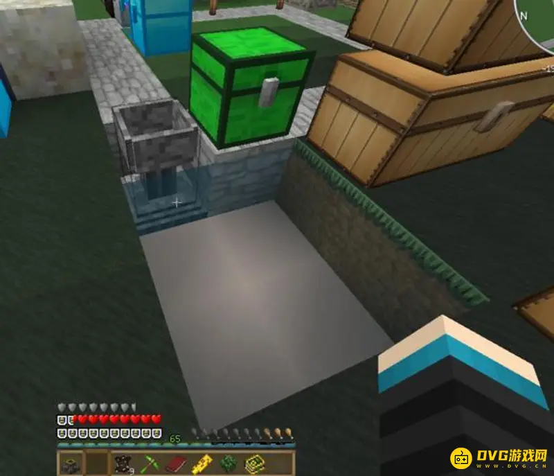 下图是我自己的习惯,因为花药台有一格半高,不论是倒水或者扔花瓣都比较别扭,所以我把地皮挖下一格。然后在旁边放上2X2的无限水。