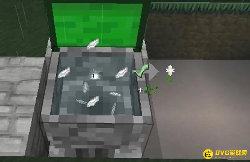 放好水把花瓣扔进去之后会出现下图的画面,这说明材料没有放错,此时再扔进一个小麦种子就可以得到白雏菊了。