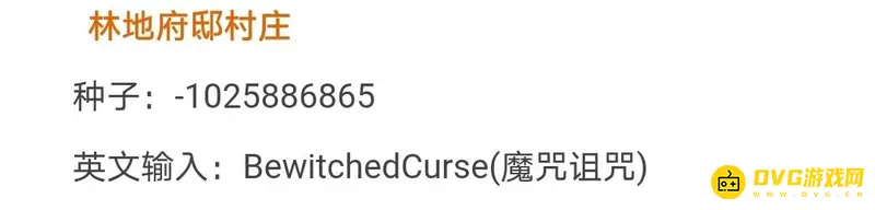3.林地府邸村庄种子如下图;此村庄边上即为林地大厦,再过去几句诗草原的生态群系,并且地下就是废弃的矿道,会出现灾厄村民。