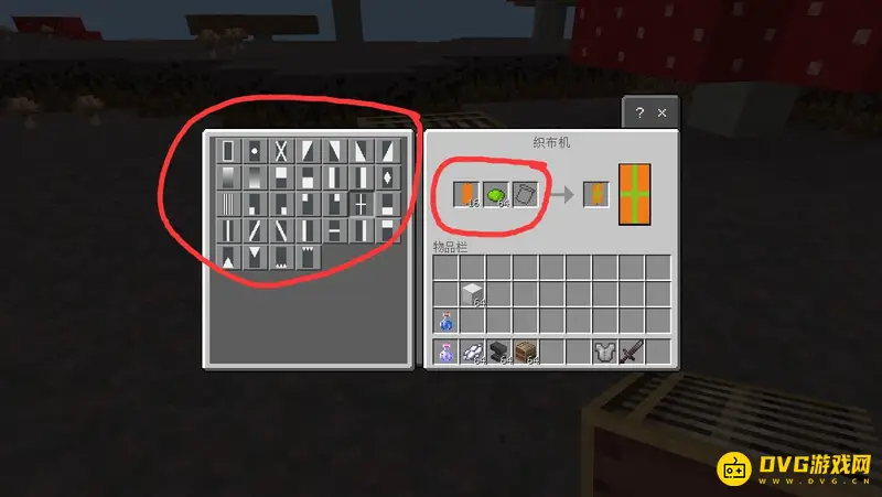 2,然后在左侧选择想要印的图案,在右侧放上旗帜和染料,就可以给旗帜染上图案了。