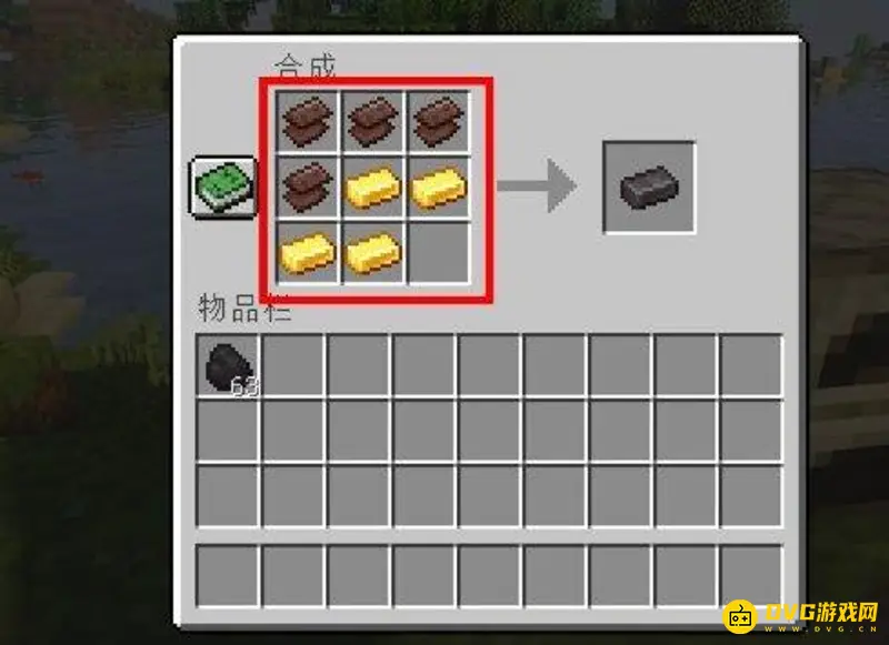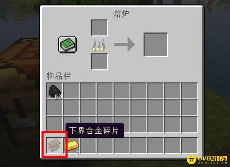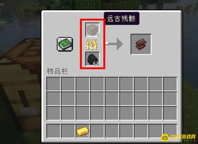先在地上放置好工作台和熔炉,物品栏准备好4个“远古残骸”、4个“金锭”和“煤炭”若干