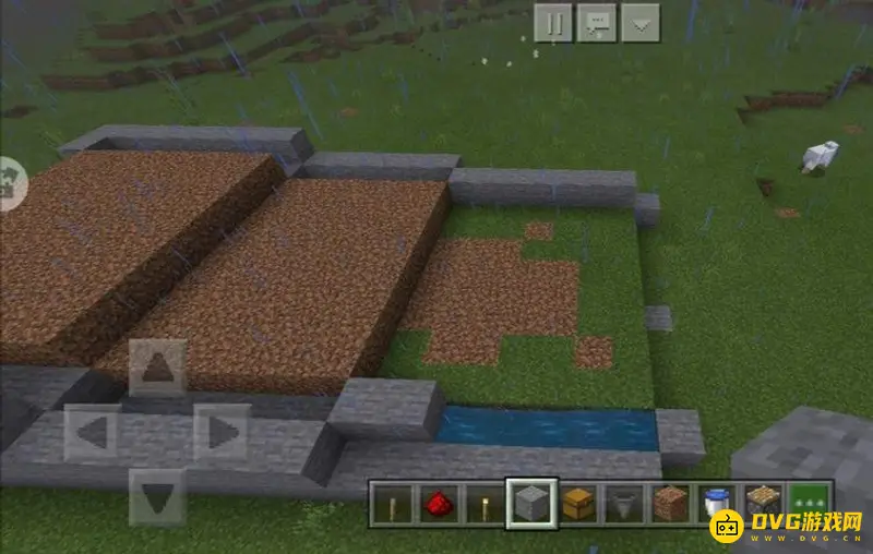 10、在最高层的那一格倒入一排水,然后用石头在水的上方遮挡一排石头