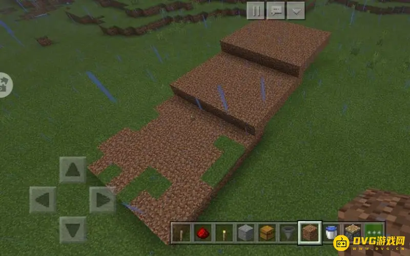 3、在第一层泥土建造完成后,开始第二层,第二层比第一层高一格,长8格,但是宽为7格。同样中间区域填充满。