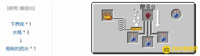 1,首先我们需要找到酿造台,然后用三个水瓶和下界疣酿造出三瓶粗制的药水。