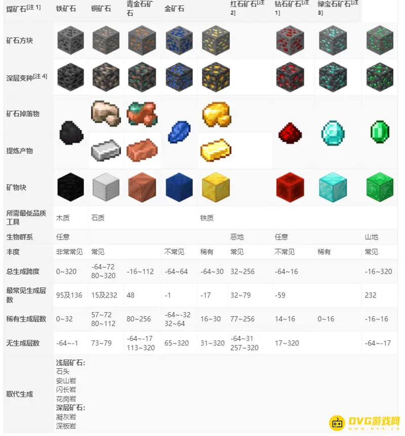 1.在我的世界中,矿石的分布是有规律可循的,也就是说固定的矿石是可以在固定的地点挖取出来的,矿石一共分为铁矿、煤炭、青金石、金、钻石、红石