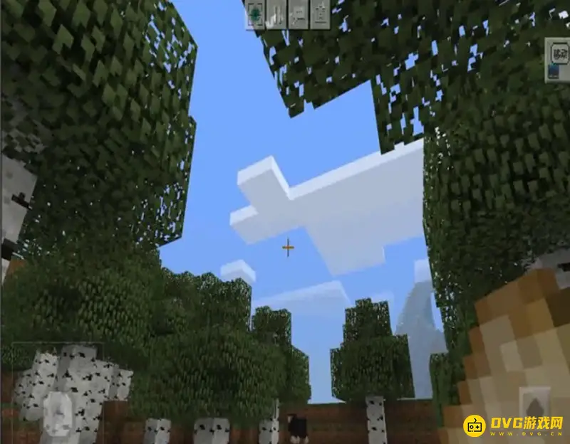 2.第二步,在PE版本里吃食物是拿着食物,对着空的地方长按即可进食,有时候长按屏幕会变成挖掘方块的动作,建议直接长按食物,或者长按远处,例如天空即可。另外满血状态下是没法吃东西的