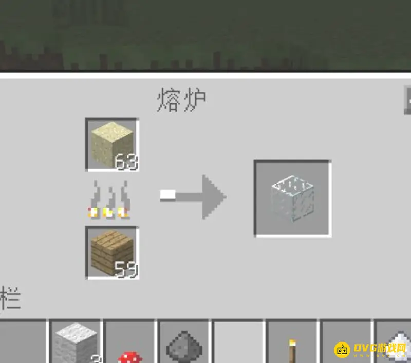 5.打开熔炉放入沙子,下面放上木材,等烧好后就可以获得玻璃了。