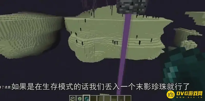 5、在生存模式中丢一个末影珍珠即可进门,跟着末地植物找到末地船。