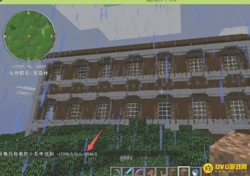 3.下面我们传送到森林府邸,坐标是:XYZ对应的17399、91、-8547。然后我们输入/tp -17399 91 -8547,注意中间用空格隔开。输入完毕后按回车键确定,等待几秒就传过去了。
