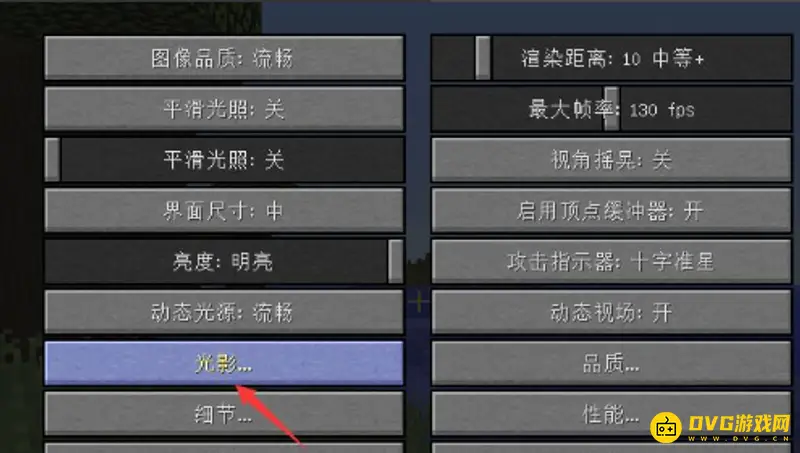 3、然后按键盘上的ESC键,选择”选项“,然后选择”视频设置“,点击“光影”。