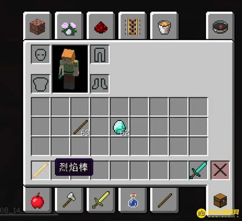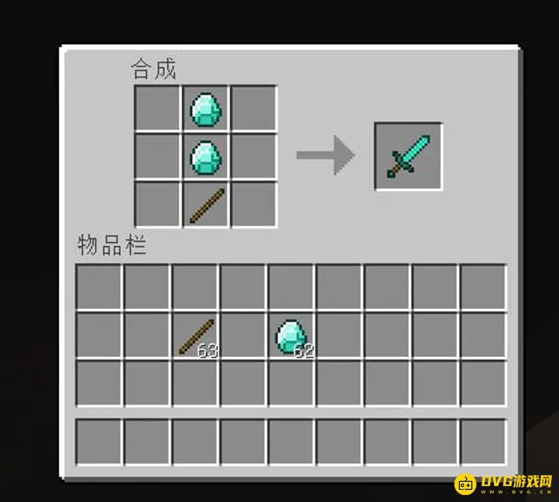 5、然后,我们需要合成武器。如图所示。我们合成一把钻石剑吧!毕竟烈焰人还是很凶悍的。