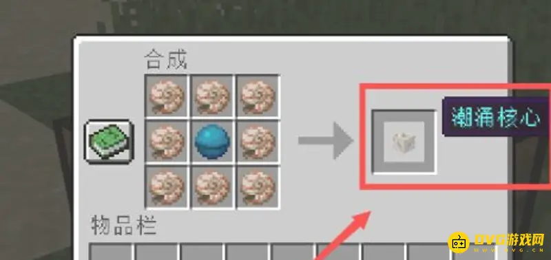 6.最后,我们可以在工作台的界面中,使用八个鹦鹉螺壳和一个海洋之心合成一个潮涌核心,利用潮涌核心可以建造潮涌核心结构抵抗溺尸的攻击。
