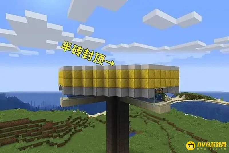 7、接着加高两格并用下半砖封顶即可,两格的高度是防止末影人的生成。