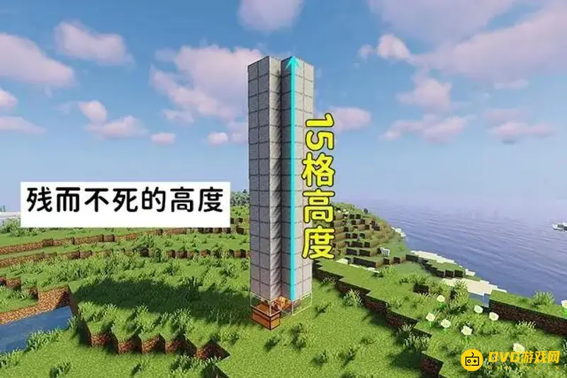 2、接着在营火上方加高15层,这个高度可以将大部分敌对生物摔至残血而不致死。