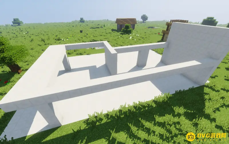 1、首先,我们纯白别墅所使用的主要材料就是石英块,石英块是制作现代别墅最好的材料,大家可以在下界很轻易地取得。首先我们先把别墅的范围用石英块围起来。