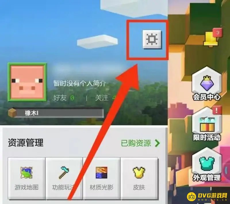 1、首先打开我的世界APP,点击游戏界面左上角的头像。