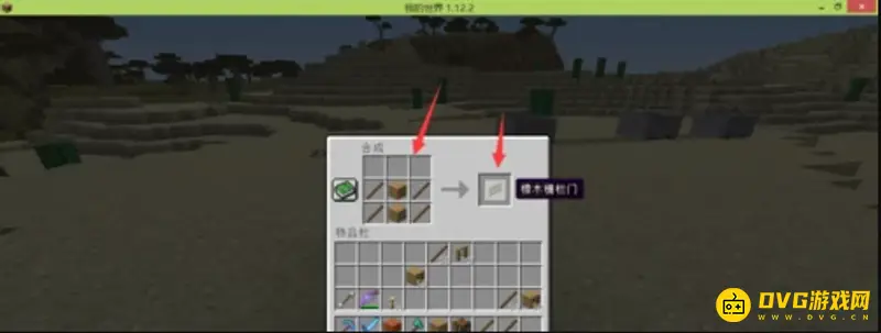 5.栅栏门的制作方法:和栅栏的合成方法类似,不过木棍和木板的位置刚好相反,木棍放两边,木板放中间。