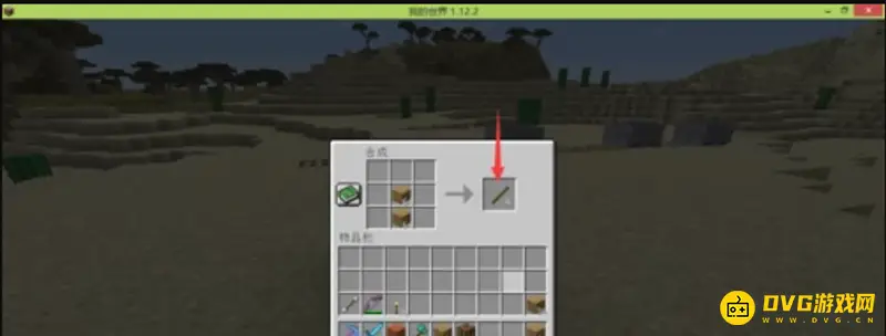 3.然后将合成的木板拿出来,再放到工作台中,每两个木板可以制作4根木棍,如果需要大量的木棍,可以上面一组(64个)木板下面一组木板,让按住shift键,点击木棍,可以快速合成64×4=284根木棍,此方法也适用于其他物品的大量和快速合成。