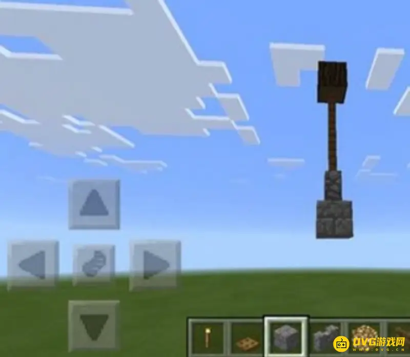 5.最后在灯架中间加上作为光源的萤石,并且在其下方用木栅栏做小小的修饰, (另外 觉得萤石太刺眼的朋友,可以试着将其换成发光黑曜石,效果会比目前好很多哦)。