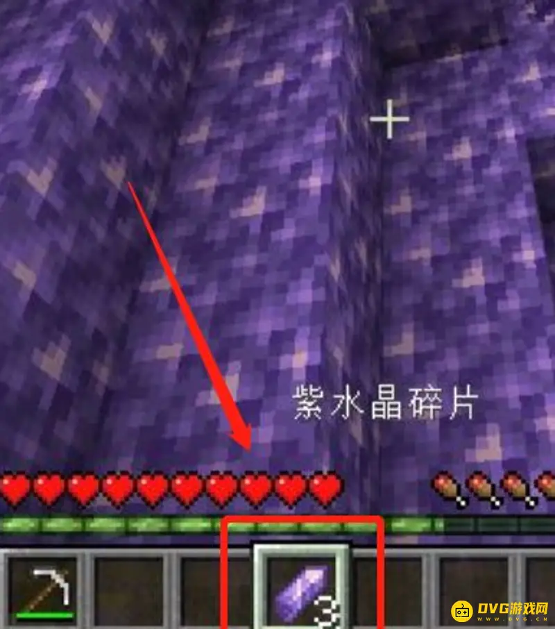 2、用铁镐或更高级的稿子收集一块紫水晶碎片。