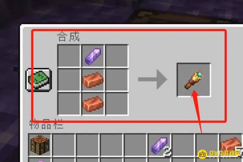4、收集完原材料后,在工作台中摆出紫水晶和铜矿制作望远镜。