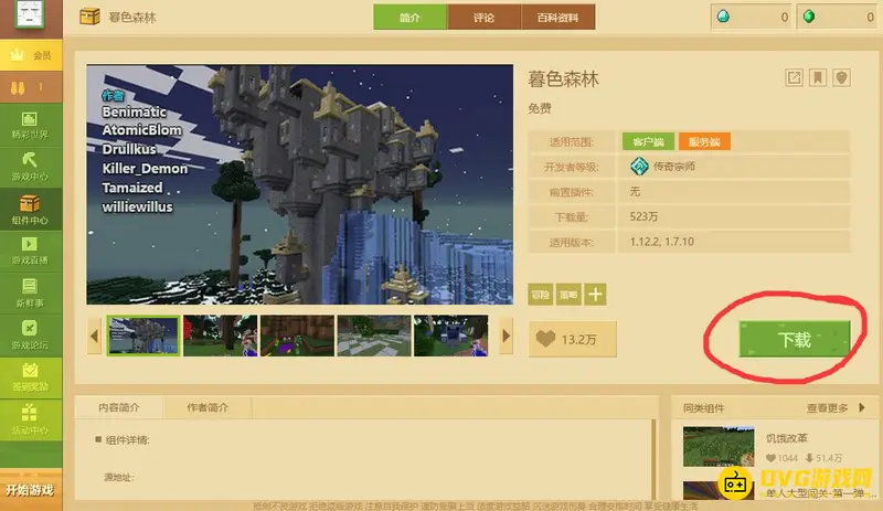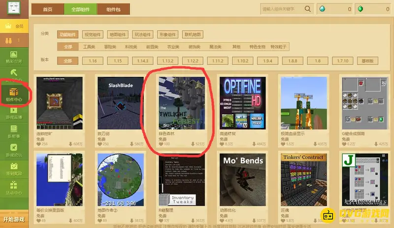 1,首先我们进入我的世界,点击左侧的组件中心,然后点击右侧的任意MOD。