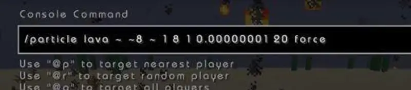 2、先看下面命令force前面部分,它写的是“/particle <名称> <速度> <数量> ”