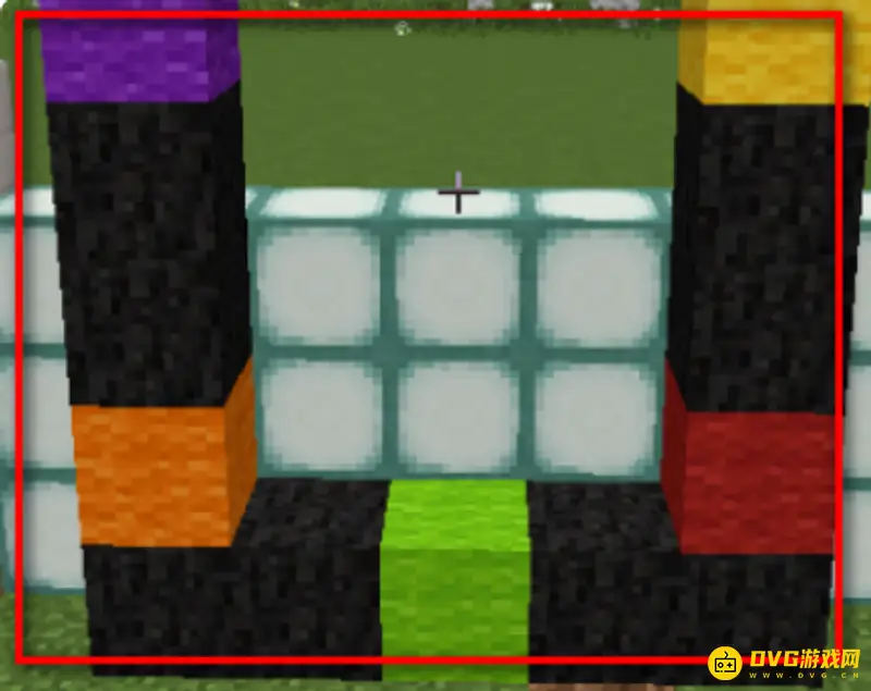 1.找到一个叫“远古的岩石”的方块,围成如图所示的形状,必须是高6个方块,宽5个方块;