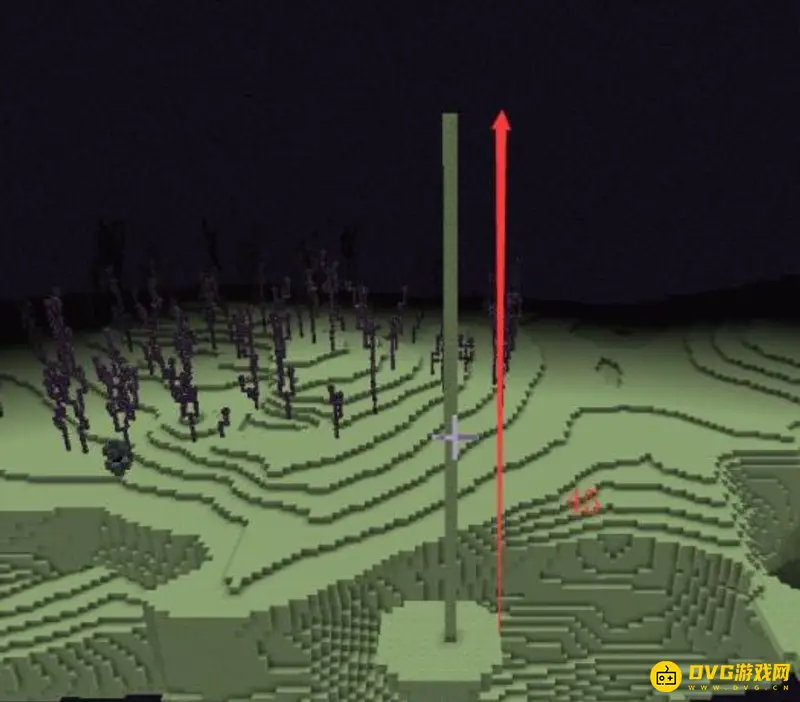1、首先我们先找到尽量平坦的地方搭45格高的高度。