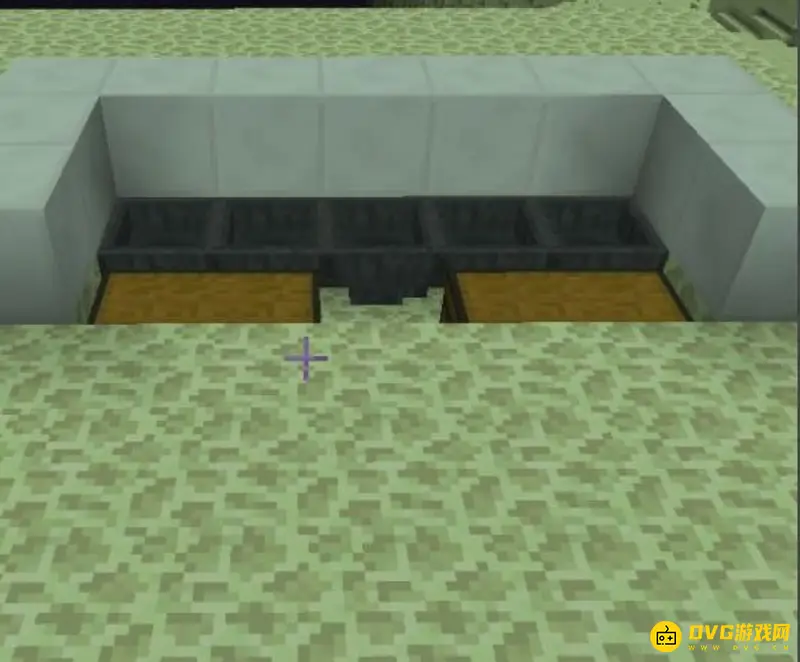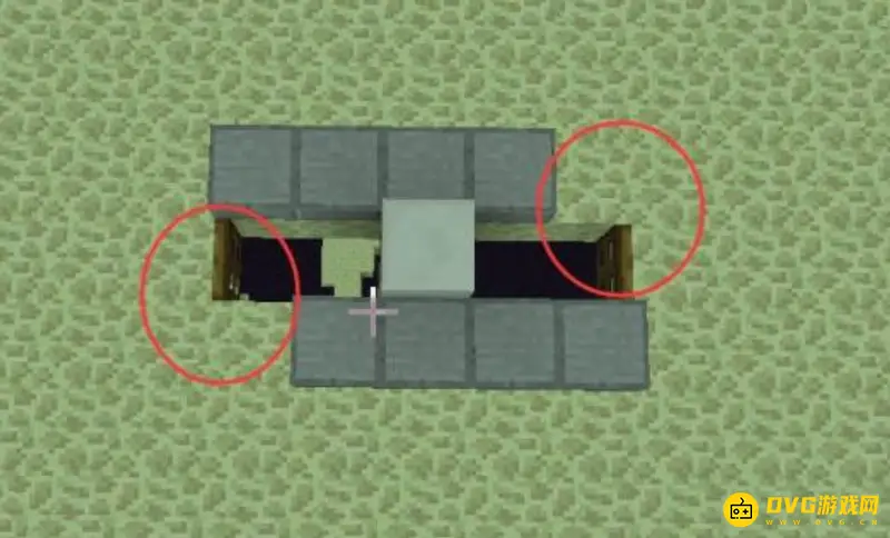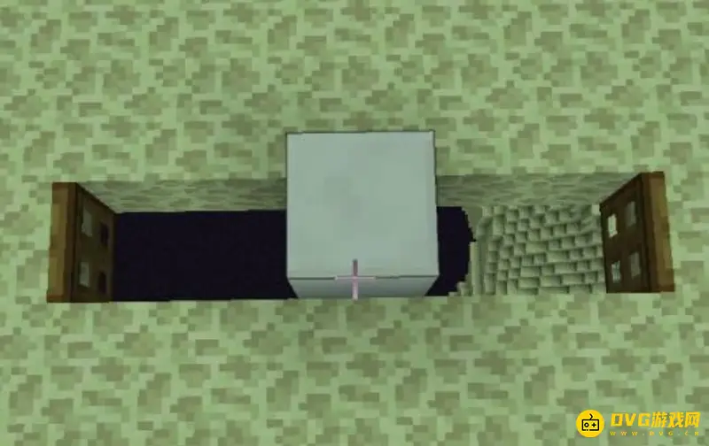 4、中心点提高一格,并且挖空两边的两格,分别放置两个活板门向内打开。