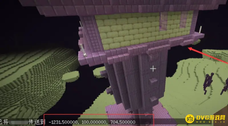3.可以看到,我们已经传送到最近的末地城市了,我们在末地城市旁边寻找就可以找到末地船了。