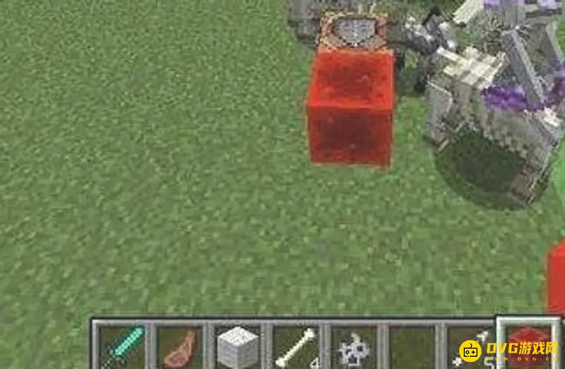6.如果输入的指令还未生效,若要使指令生效。需要红石启动,由于红石不会自动和命令方块连接,红石末端必须对准命令方块。