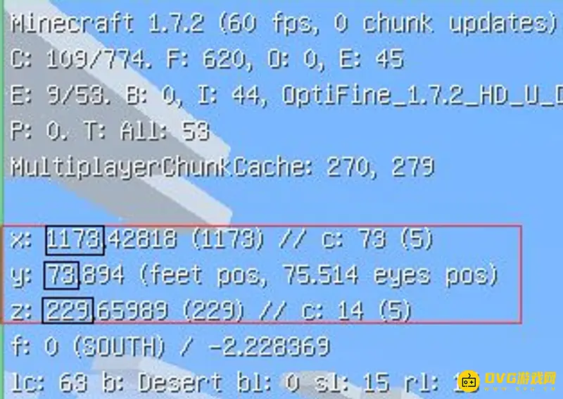 1.在游戏界面中要传送的地方按F3,在游戏的左上角查看传送所在地方的x、y、z坐标。