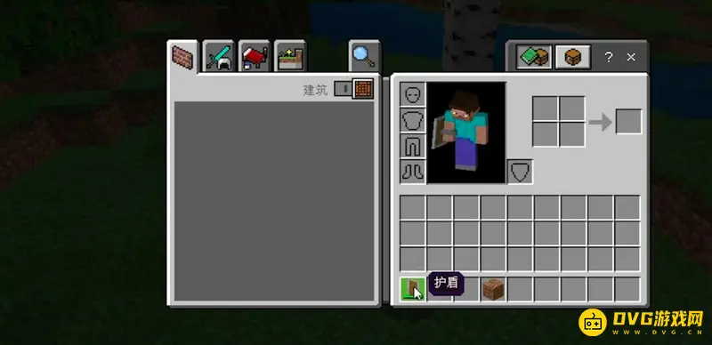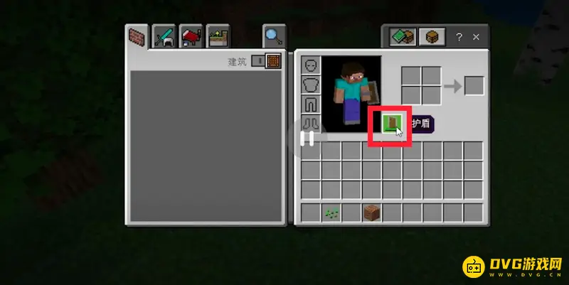 ①当玩家将盾牌放在物品栏时,人物会右手持盾;