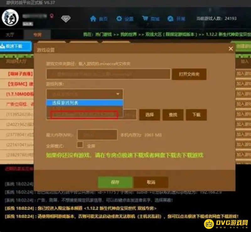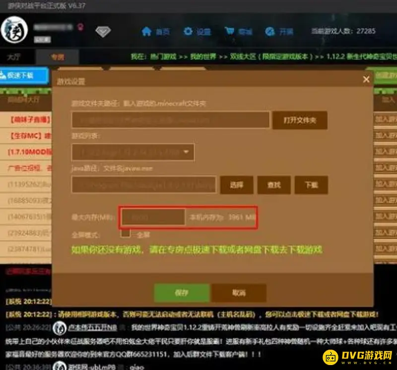 5.游戏内存设置,会显示本机的最大内存,设置比最大内存小一点就可以了。