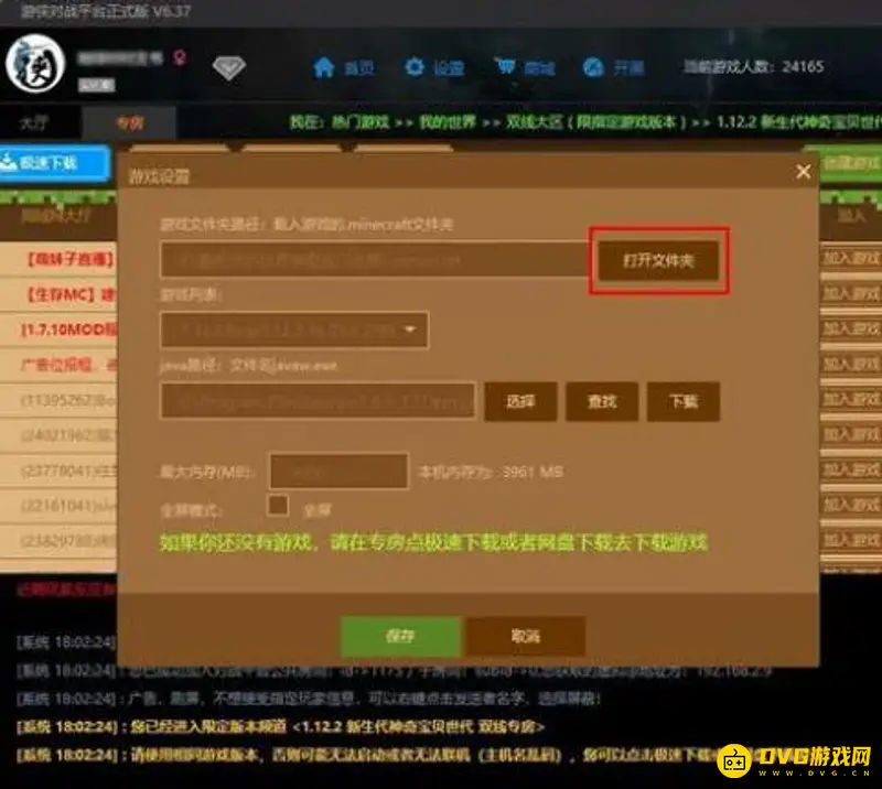 2.登录账号点击热门游戏,打开游戏设置,打开文件夹找到下载好的整合包的文件夹,点击进去,再选中minecraft这个文件夹确定就可以。