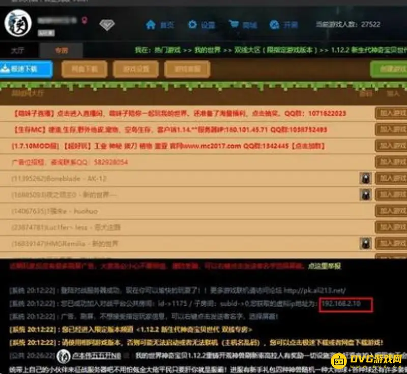 14.在这个界面输入你的虚拟IP地址 冒号 你对局域网开放后弹出来的数字。然后加入服务器就可以联机。